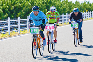 1チーム最大8名の登録ライダーが交代しながら1台の自転車を乗り継ぎ、6時間の完走を目指します。