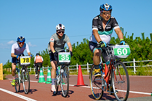 - 脱水症状等にならないよう、水分や休憩を十分取ってください。(走行中の水分補給、補給食は可。ただし容器などをコースに落下させないようご注意願います。)